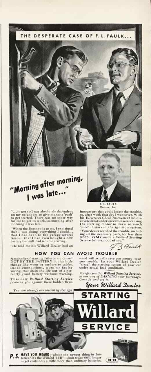 1939 Willard Starting Service Car Batteries Print Ad Desperate Case Of Fl Faulk Ebay